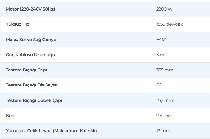 ● 2200 W Endüstriyel Motor – Ağır hizmet tipi metal kesim uygulamaları için güçlü performans